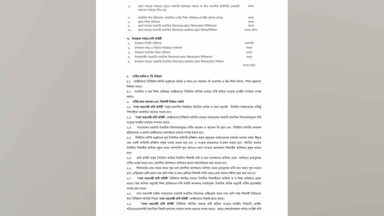 কেন্দ্রীয়ভাবে ডিজিটাল লটারি অনুষ্ঠানের তারিখ ও সময় এবং আবেদন ফি মাধ্যমিক ও উচ্চশিক্ষা বিভাগ নির্ধারণ করবে। মাধ্যমিক ও উচ্চশিক্ষা অধিদপ্তর (মাউশি) কেন্দ্রীয়ভাবে ডিজিটাল লটারির মাধ্যমে ভর্তি প্রক্রিয়া সংক্রান্ত যাবতীয় কার্যক্রম সম্পন্ন করবে।