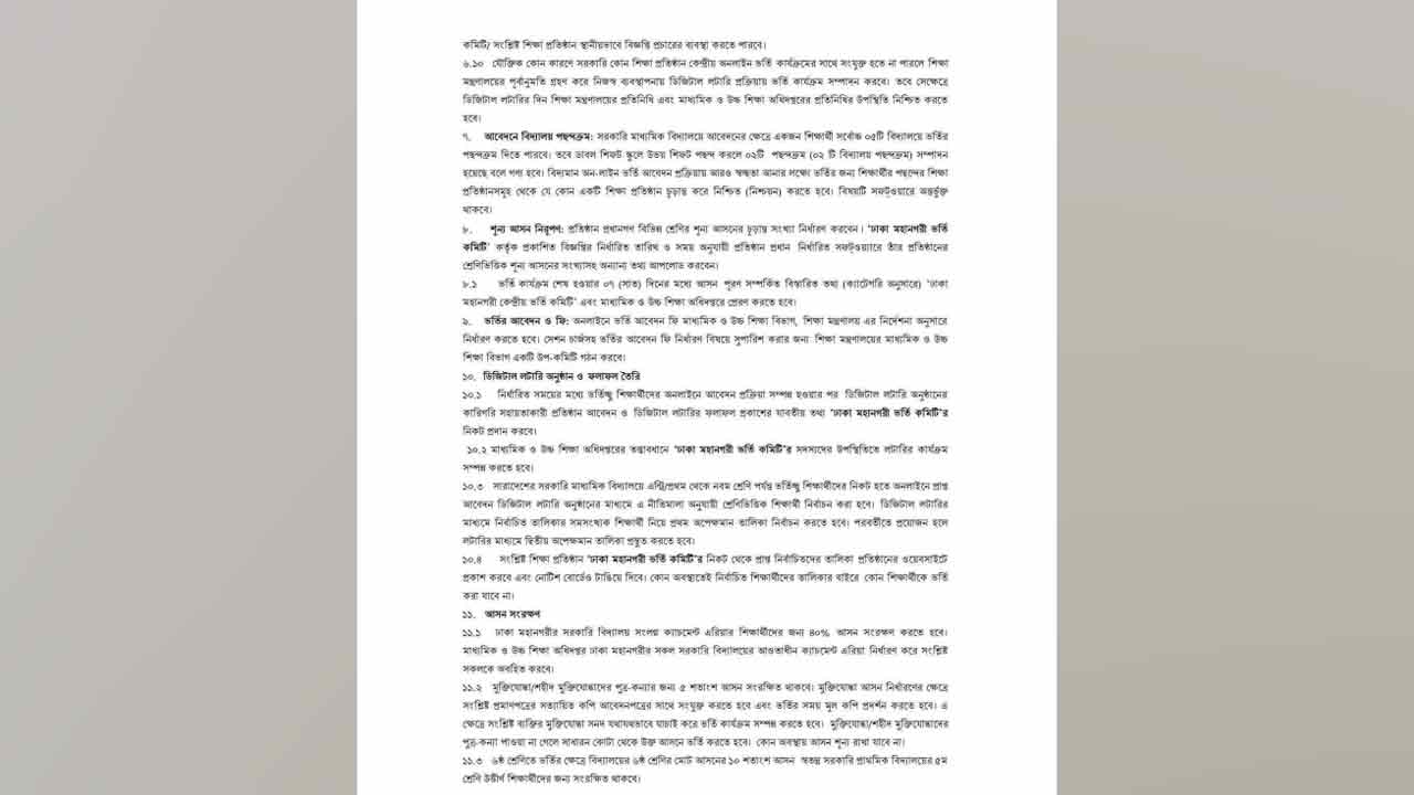 সভার সিদ্ধান্ত অনুযায়ী, আগামী ১৯ নভেম্বরের মধ্যে এ ভর্তি বিজ্ঞপ্তি প্রকাশ করা হবে। ২১ নভেম্বর থেকে অনলাইনে আবেদন গ্রহণ শুরু হবে, যা চলবে ৭ ডিসেম্বর পর্যন্ত। আবেদন প্রক্রিয়া শেষে আগামী ১৪ ডিসেম্বর ডিজিটাল লটারি অনুষ্ঠিত হতে পারে। লটারি হওয়ার পর তাতে নির্বাচিত শিক্ষার্থীরা ১৭-২১ ডিসেম্বর ভর্তি হতে পারবে।