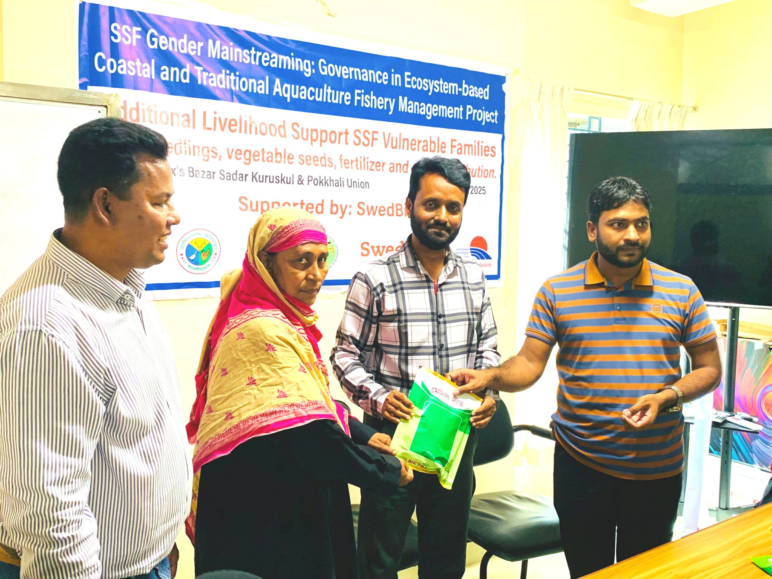 কক্সবাজারে ক্ষুদ্র মৎস্যজীবী জেলে পরিবারের মাঝে সবজির বীজ বিতরণ করা হয়েছে।