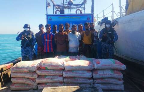 মায়ানমার থেকে মাদকের বিনিময়ে বাংলাদেশি সিমেন্ট পাচারকালে ৯ চোরাকারবারিকে আটক করেছে কোস্টগার্ড।