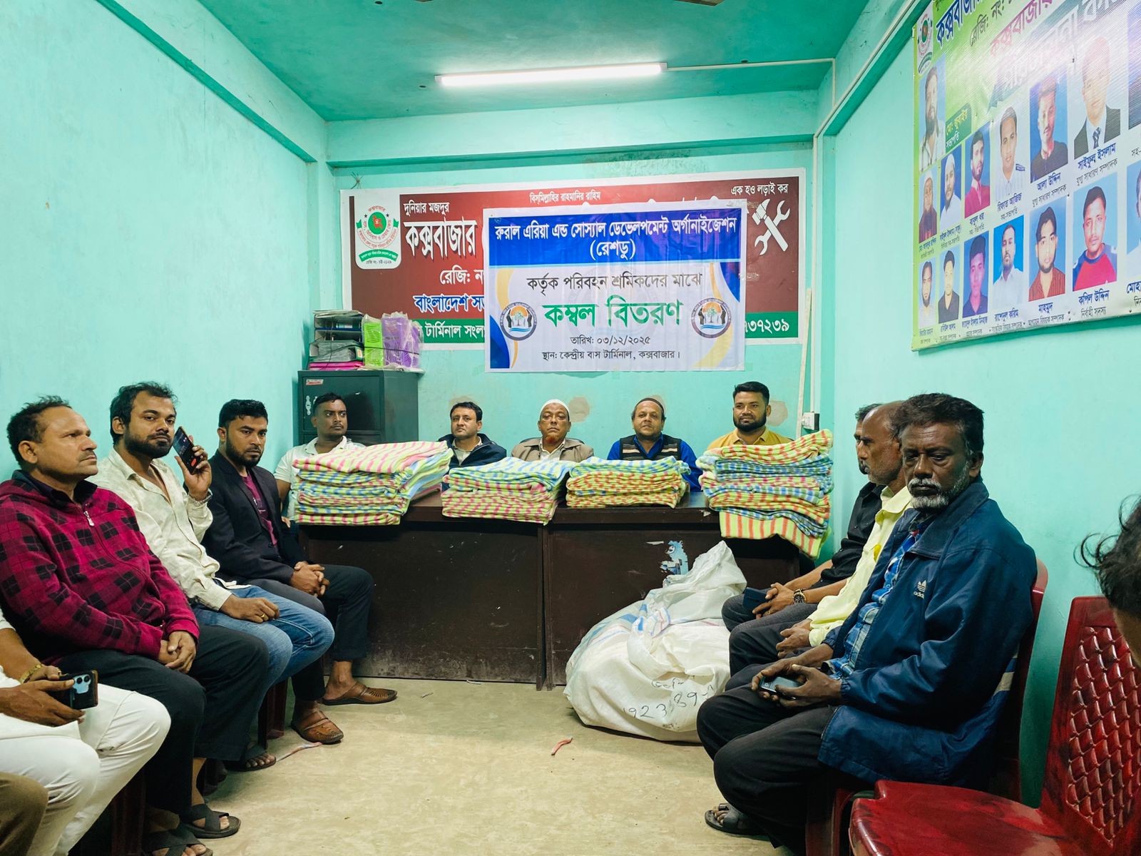 কক্সবাজার কেন্দ্রীয় বাস টার্মিনাল এলাকায় পরিবহন শ্রমিকদের মাঝে কম্বল বিতরণ করলো রুরাল এরিয়া এন্ড সোস্যাল ডেভেলপমেন্ট (রেশডু)।