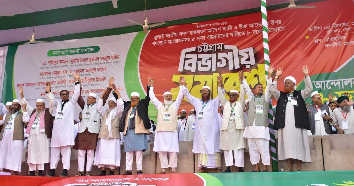 শুক্রবার (৫ ডিসেম্বর) বিকেলে চট্টগ্রাম নগরের লালদীঘি ময়দানে ৮ দলের মহাসমাবেশে প্রধান অতিথির বক্তব্যে তিনি এসব কথা বলেন।