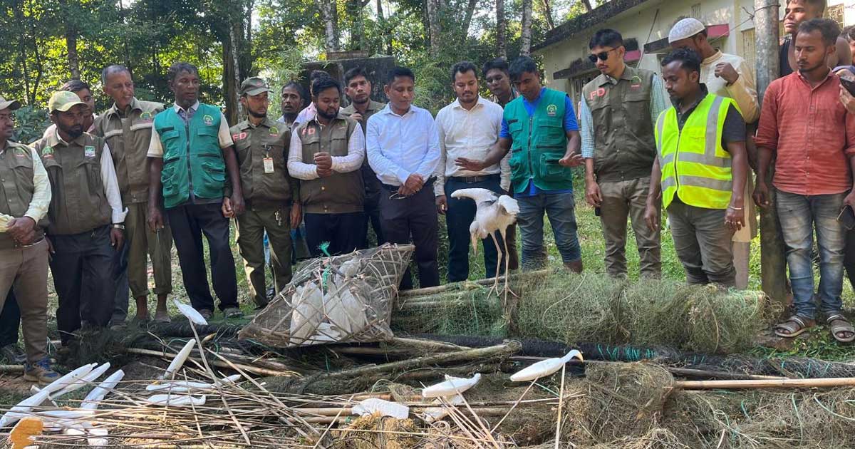উখিয়া বনবিভাগ সূত্র জানায়, দীর্ঘদিন ধরে চরাঞ্চল, জলাশয় ও কৃষিজমির পাশে অবৈধভাবে বকসহ বিভিন্ন বন্যপ্রাণী শিকার ও ধরার ফাঁদ বসানো হচ্ছিল। অভিযানে ধ্বংস করা হয়েছে ৭০০টি জাল, ৩ হাজারের বেশি কৃত্রিম বক ও ১০০টি ঘরাকৃতির ফাঁদ। উদ্ধার করা হয়েছে ১০টি জীবিত বক ও একটি শামুকখোল, যেগুলো পরে প্রাকৃতিক পরিবেশে অবমুক্ত করা হয়েছে।