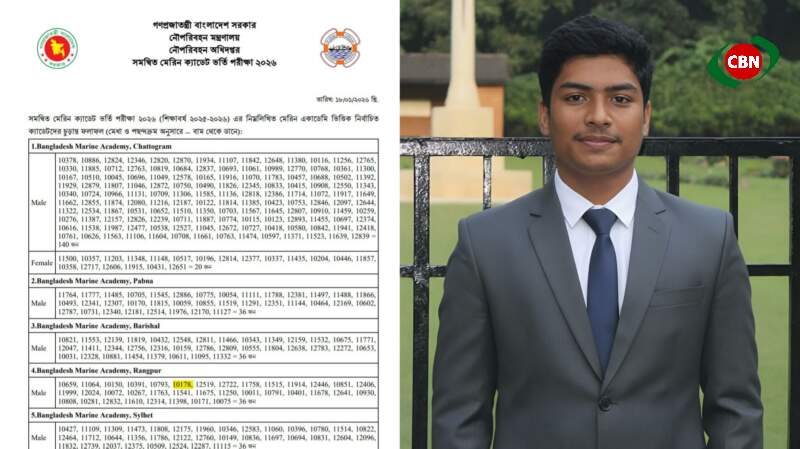 সমন্বিত মেরিন ক্যাডেট ভর্তি পরীক্ষা–২০২৬ (বাংলাদেশ মেরিন একাডেমি, রংপুর)-এ অংশগ্রহণ করে অত্যন্ত কৃতিত্বের সঙ্গে সাফল্য অর্জন করেছেন কক্সবাজার জেলার চকরিয়া উপজেলার ফাঁসিয়াখালী ইউনিয়নের সিকদারপাড়া এলাকার কৃতী সন্তান এনায়েতুর রহমান হামিম। দেশের অন্যতম মর্যাদাপূর্ণ ও প্রতিযোগিতামূলক এই পরীক্ষায় উত্তীর্ণ হওয়া শুধু ব্যক্তিগত অর্জন নয়, এটি পরিবার, এলাকা এবং সমগ্র চকরিয়াবাসীর জন্য গর্বের বিষয় হয়ে উঠেছে।