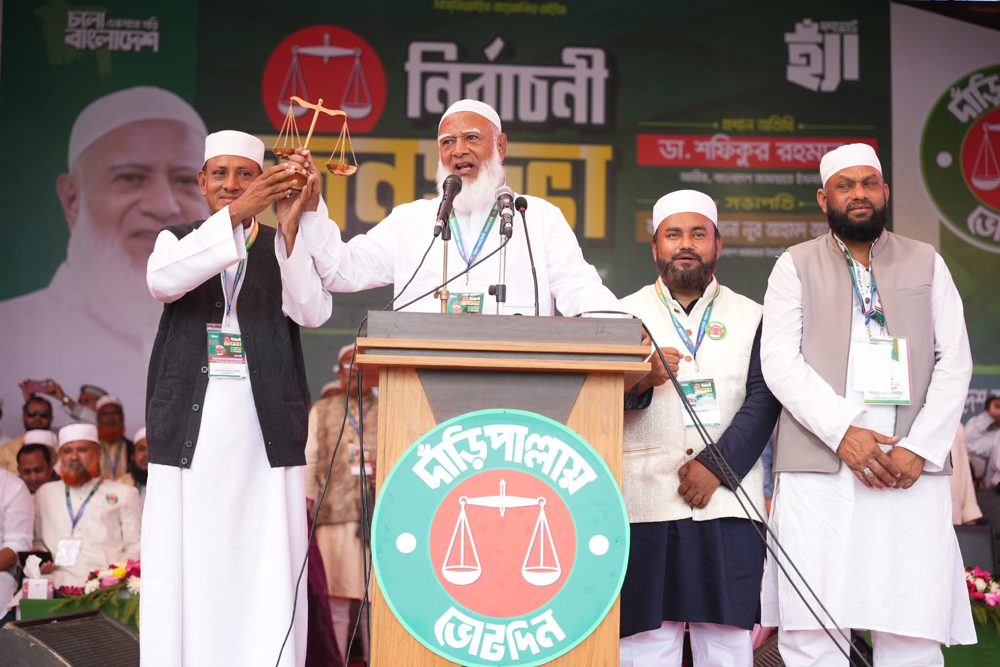 নির্বাচনী জনসভায় দলীয় প্রার্থীদের দাঁড়িপাল্লা প্রতীক তুলে দেন জামায়াতের আমির ডা. শফিকুর রহমান