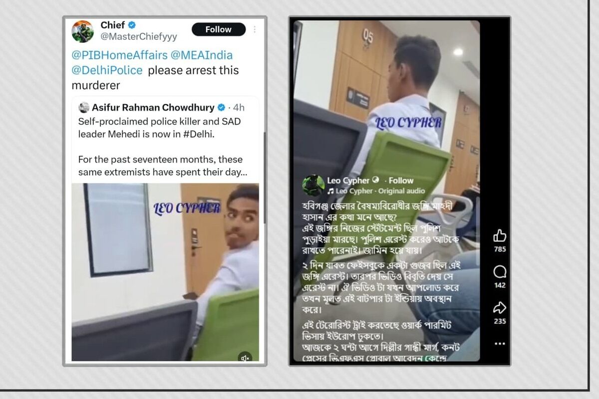 বৈষম্যবিরোধী ছাত্র আন্দোলন হবিগঞ্জ জেলা শাখার সদস্য সচিব মাহদী হাসান ব্যক্তিগত কাজে দিল্লীতে অবস্থানকালে গতকাল মঙ্গলবার দুপুরে তার অজ্ঞাতে ভিডিও ধারণ করে তা সামাজিক মাধ্যমে ছড়িয়ে দেয়া হয়। এসব পোস্টে মাহদীর নাম পরিচয় উল্লেখ করে তাকে ‘জুলাইয়ের আত্মস্বীকৃত খুনি’ বলে প্রচার করে হুমকি দেয়া হচ্ছিল।