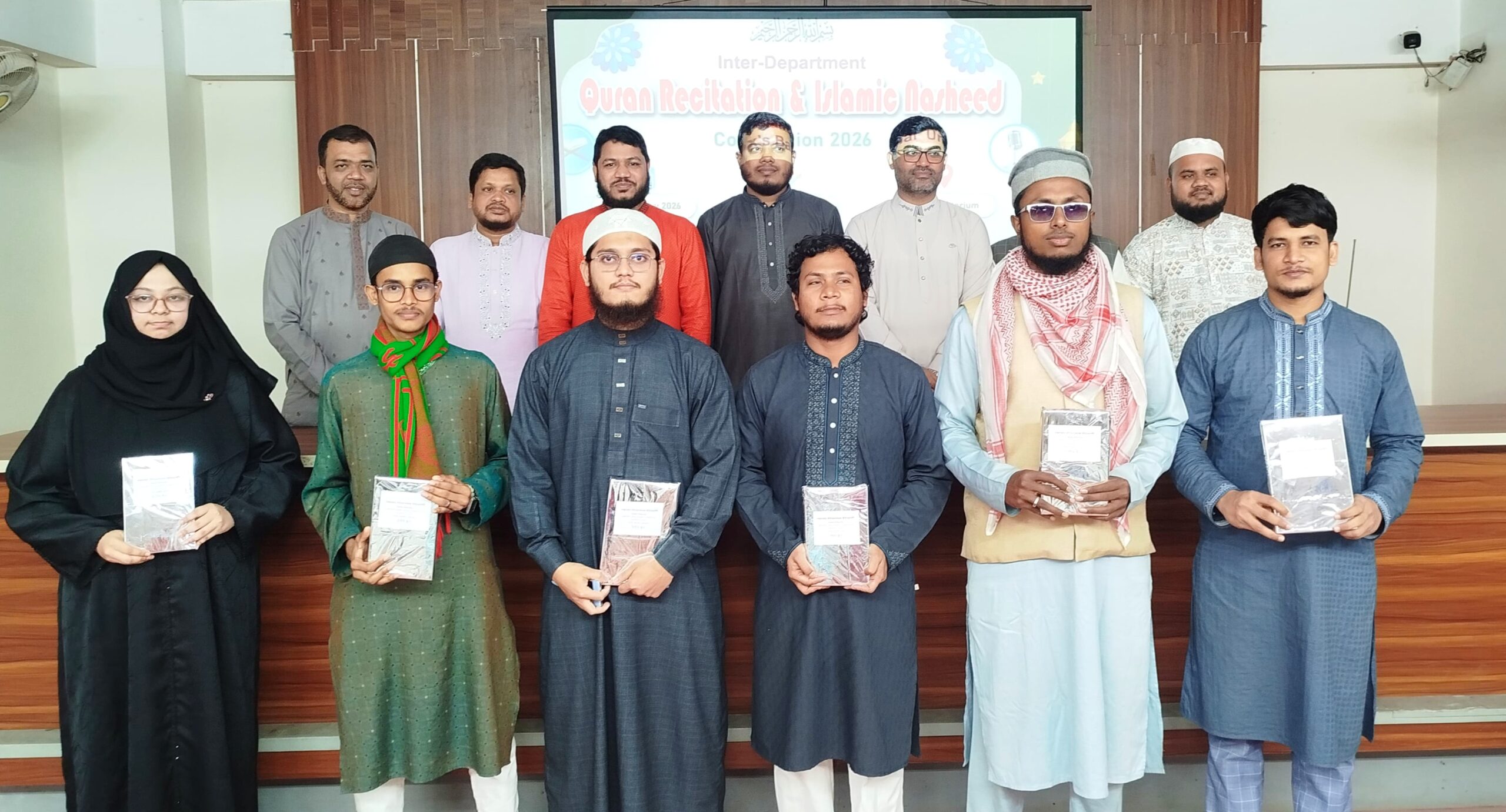 ইসলামী সংগীত প্রতিযোগিতায় ইংরেজি বিভাগের মোঃ জাহিদ প্রথম, ইসলামিক স্টাডিজ বিভাগের রেজাউল করিম দ্বিতীয় এবং সিএসই বিভাগের তাসনিম মরজিয়া তুরিন তৃতীয় হয়েছে।