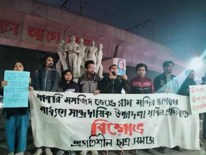 বাবরি মসজিদের স্থলে রামমন্দির উদ্বোধনের প্রতিবাদে ঢাবি শিক্ষার্থীদের বিক্ষোভ