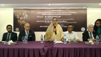 এম.এ আজিজ রাসেল: পরিবেশ, বন ও জলবায়ূ পরিবর্তন উপমন্ত্রী হাবিবুন নাহার বলেছেন, “বন্যপ্রাণী পাচার রোধে জড়িতদের বিরুদ্ধে কঠোর অবস্থানে রয়েছে সরকার। পাশাপাশি বিপন্ন প্রজাতিসহ সকল স্তরের বন্যপ্রাণী সংরক্ষণেও কাজ করা হচ্ছে। বৃহস্পতিবার (১৪ সেপ্টেম্বর) কক্সবাজারে একটি হোটেলের সম্মেলন কক্ষে বাংলাদেশস্থ